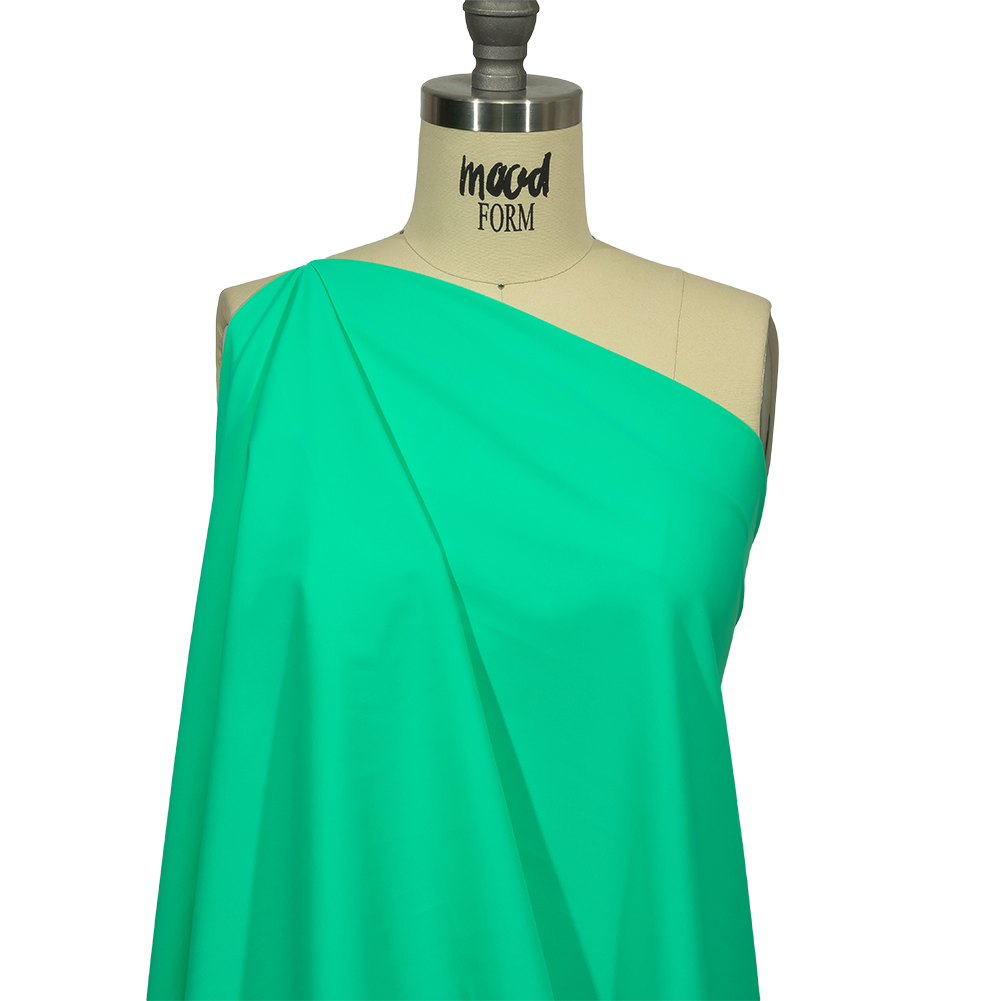 Make a stylish splash in this Santorini Plus Mint Jelly UV Protective Stretch Recycled Swimwear Tricot! Seen here in bright mint green, this tricot is definitely more than meets the eye. In addition to the 25% all-way stretch, bouncy drape, and smooth, cool feel, it contains several properties that make it the ideal fabric for swimwear, including one-pieces, bikinis, and both statement and performance swimsuits. Discover these fabulous properties for yourself:Chlorine Resistance: Keep your swimsuit looking and feeling fresh for years to come, thanks to the chlorine resistance which helps to maintain colorfastness, elasticity, and fabric integrity.UV Protection: Protect yourself against harmful UV rays with a UPF of 50+.The Santorini Collection comes in two different grounds—Plus and Light—with more than 40 colorways each! This product is from the Santorini Plus Collection, which features a slightly heavier weight and is made with Stretch Recycled nylon.MoodEarth Verified: This eco-friendly material is OEKO-TEX certified; tested independently and worldwide, the certification system evaluates finished, semi-finished, and raw textiles while thoroughly covering chemicals, harmful substances, and precautionary parameters. This fabric is also made with Stretch Recycled materials, which are made from post-consumer waste that is transformed into raw fibers, producing a high-quality, eco-friendly fabric. For more information on Mood's sustainability initiatives, check out MoodEarth here. WARNING: Cancer and Reproductive Harm - www.P65Warnings.ca.gov.