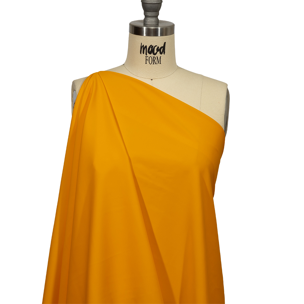 Be the best bathing beauty around with this Santorini Plus Parrot UV Protective Stretch Recycled Swimwear Tricot! Seen here in golden orange, this tricot is definitely more than meets the eye. In addition to the 25% all-way stretch, bouncy drape, and smooth, cool feel, it contains several properties that make it the ideal fabric for swimwear, including one-pieces, bikinis, and both statement and performance swimsuits. Discover these fabulous properties for yourself:Chlorine Resistance: Keep your swimsuit looking and feeling fresh for years to come, thanks to the chlorine resistance which helps to maintain colorfastness, elasticity, and fabric integrity.UV Protection: Protect yourself against harmful UV rays with a UPF of 50+.The Santorini Collection comes in two different grounds—Plus and Light—with more than 40 colorways each! This product is from the Santorini Plus Collection, which features a slightly heavier weight and is made with Stretch Recycled nylon.MoodEarth Verified: This eco-friendly material is OEKO-TEX certified; tested independently and worldwide, the certification system evaluates finished, semi-finished, and raw textiles while thoroughly covering chemicals, harmful substances, and precautionary parameters. This fabric is also made with Stretch Recycled materials, which are made from post-consumer waste that is transformed into raw fibers, producing a high-quality, eco-friendly fabric. For more information on Mood's sustainability initiatives, check out MoodEarth here. WARNING: Cancer and Reproductive Harm - www.P65Warnings.ca.gov.