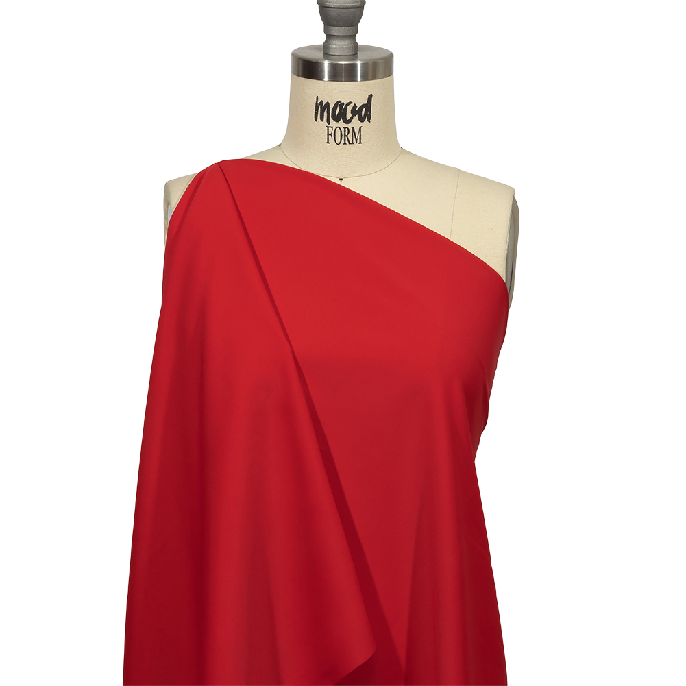 Dive into swimwear sewing with this Santorini Plus Red UV Protective Stretch Recycled Swimwear Tricot! Seen here in classic red, this tricot is definitely more than meets the eye. In addition to the 25% all-way stretch, bouncy drape, and smooth, cool feel, it contains several properties that make it the ideal fabric for swimwear, including one-pieces, bikinis, and both statement and performance swimsuits. Discover these fabulous properties for yourself:Chlorine Resistance: Keep your swimsuit looking and feeling fresh for years to come, thanks to the chlorine resistance which helps to maintain colorfastness, elasticity, and fabric integrity.UV Protection: Protect yourself against harmful UV rays with a UPF of 50+.The Santorini Collection comes in two different grounds—Plus and Light—with more than 40 colorways each! This product is from the Santorini Plus Collection, which features a slightly heavier weight and is made with Stretch Recycled nylon.MoodEarth Verified: This eco-friendly material is OEKO-TEX certified; tested independently and worldwide, the certification system evaluates finished, semi-finished, and raw textiles while thoroughly covering chemicals, harmful substances, and precautionary parameters. This fabric is also made with Stretch Recycled materials, which are made from post-consumer waste that is transformed into raw fibers, producing a high-quality, eco-friendly fabric. For more information on Mood's sustainability initiatives, check out MoodEarth here. WARNING: Cancer and Reproductive Harm - www.P65Warnings.ca.gov.