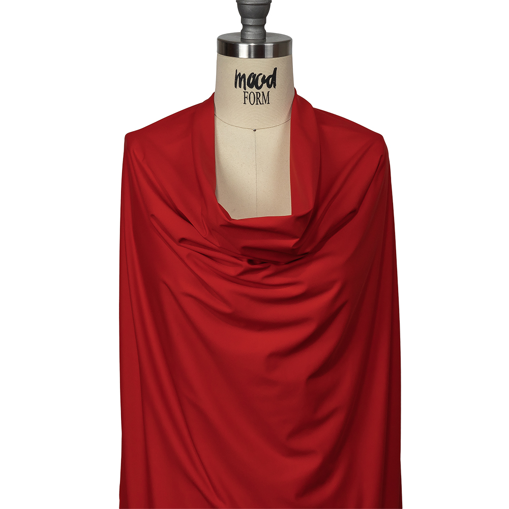 Treat the gym like a runway with this Red 12 oz Nylon Jersey! Seen here in bright red, this jersey is composed of nylon fibers resulting in a smooth, slippery hand and fluid drape. With a 60% stretch throughout, leggings, tank tops, sports bras, and other activewear or athleisure applications are all within reach. Opaque, a lining is not required for the majority of projects.