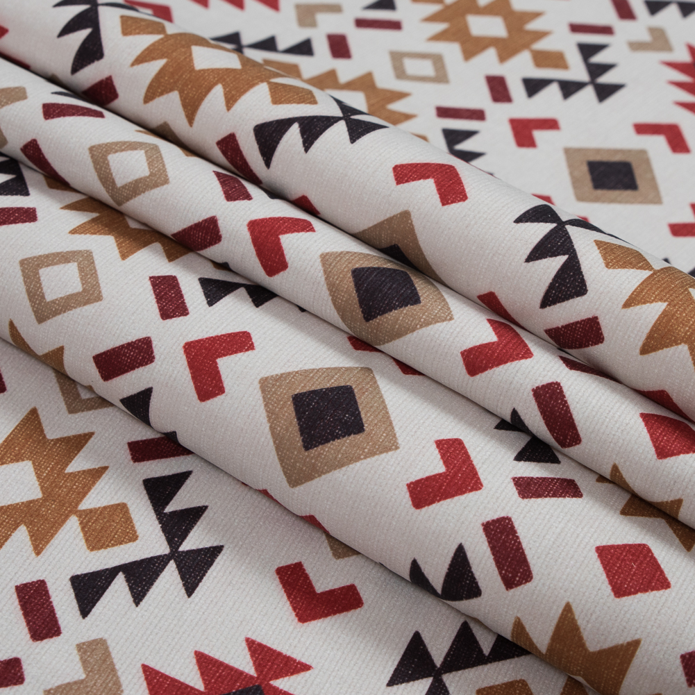 Red and Mustard Geometric Printed Brushed Canvas
