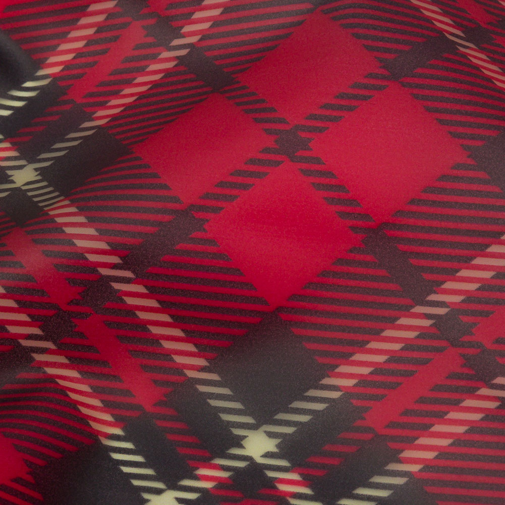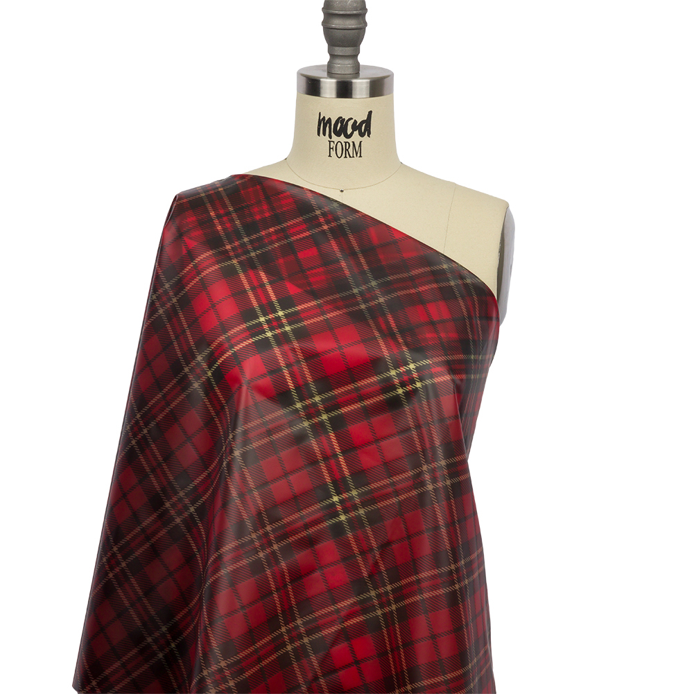 You can't go wrong with a classic plaid like this Red, Black, and Yellow Diagonal Plaid Lightweight Translucent Vinyl! Red, black, and pale yellow lines form a dynamic diagonal plaid pattern with a frosted matte finish. With a flexible drape and powdery hand, design raincoats, bucket hats, and ponchos to make rainy days a little less dreary! Plus, while it features no stretch, this vinyl is thin enough for fashion applications like overalls, dresses, and even shirts! Translucent, a lining may be added for opacity but we think the translucency is half the fun! WARNING: Cancer and Reproductive Harm - www.P65Warnings.ca.gov.