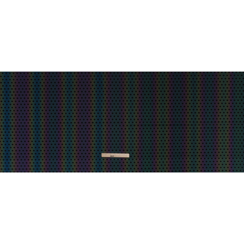 Reflective Print Spandex Knit with 4-Way Stretch - Rainbow and Black Diamond Geometric