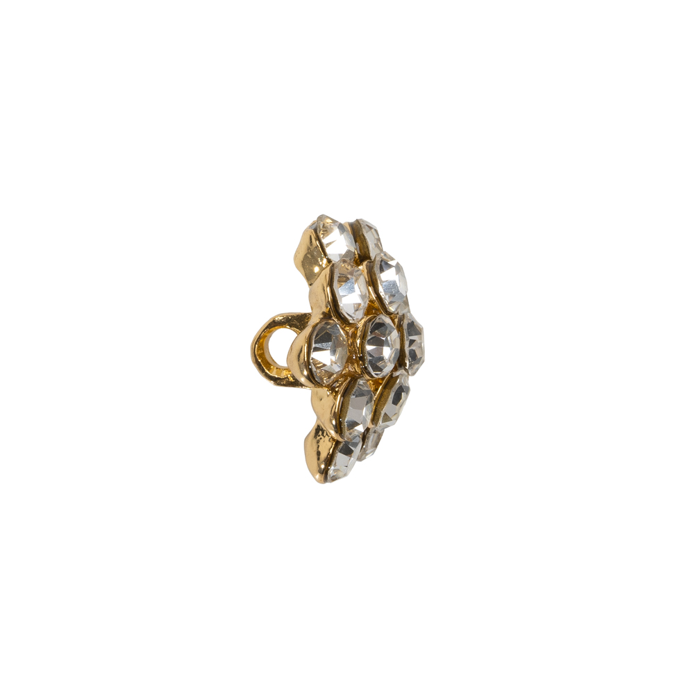 Rhinestone and Metal Shank Back Button - 24L/15mm - Crystal and Gold Rings of Stones