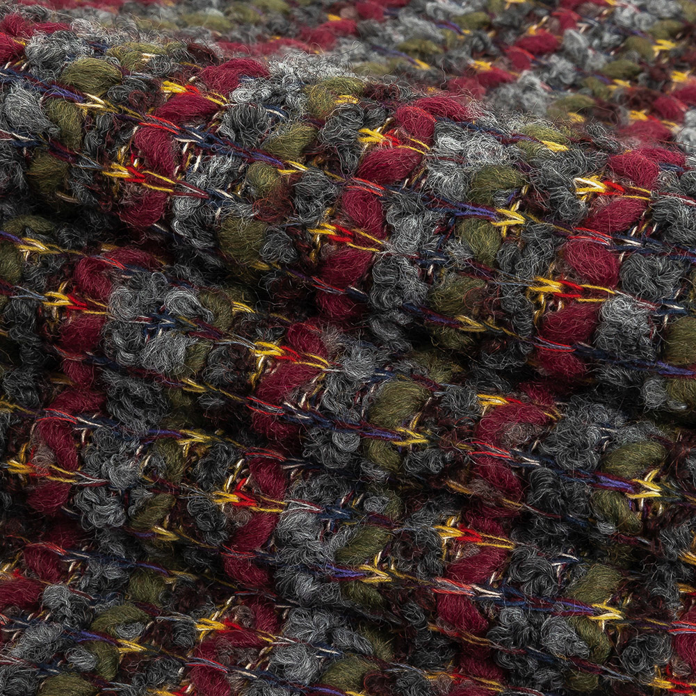 Is your heart doing loop-de-loops at this sight of this Rifle Green, Windsor Wine, and Raven Loopy Striped Wool Knit? Ours, too! Spiraling, boucle-like threads and smoother, chunky yarns with a handspun feel make up stripes of olive green, wine red, and charcoal gray on the face, accented by spots of mustard yellow, while the reverse showcases the same colors in a smoother stockinette construction. Add texture to your winter wardrobe with chunky cardigans, cozy cocoon coats with oversized buttons, or all sorts of winter accessories, thanks to the comfortable all-way stretch and malleable drape of this knit. With a somewhat open construction, consider layering this fabric for additional warmth and comfort in wear.