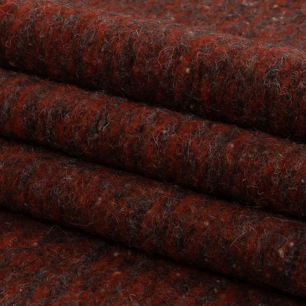 You'll roo the day you don't buy this Rooibos Tea, Gray and Beige Speckled Fuzzy Blended Wool Single Faced Fleece Knit! A heathered ground of gray and burnt red-orange is dotted with beige and blue flecks. Pliable, fuzzy, and soft with 35% widthwise stretch, create cardigans, pullovers, ponchos, and more. While slightly translucent, a lining is not necessary for opacity purposes.