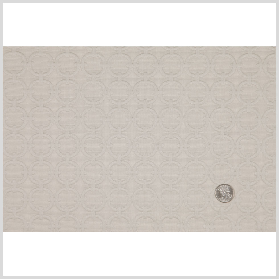 Drift into a euphoric state of mind on a chair or couch made from this embroidered cotton and polyester woven. Counting its on-going geometric pattern of embroidered interlocking rings is almost as relaxing as counting speckles on a ceiling or imaginary sheep at a day's end. Of a heavy weight and with a stiffer drape, this cotton faille is not only soft by strongly textured. Laying at 57" in width, take this ambitious home fabric and use it for an array of upholstery projects.