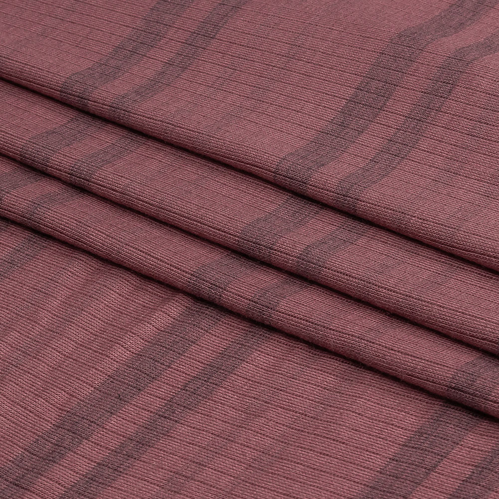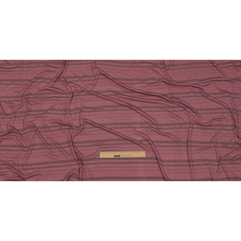 Rose and Charcoal Striped Stretch Rayon Rib Knit