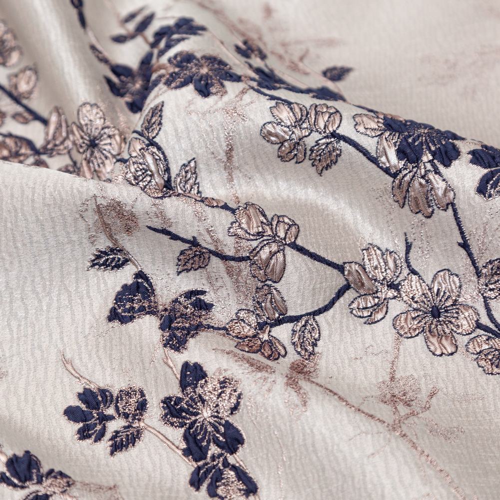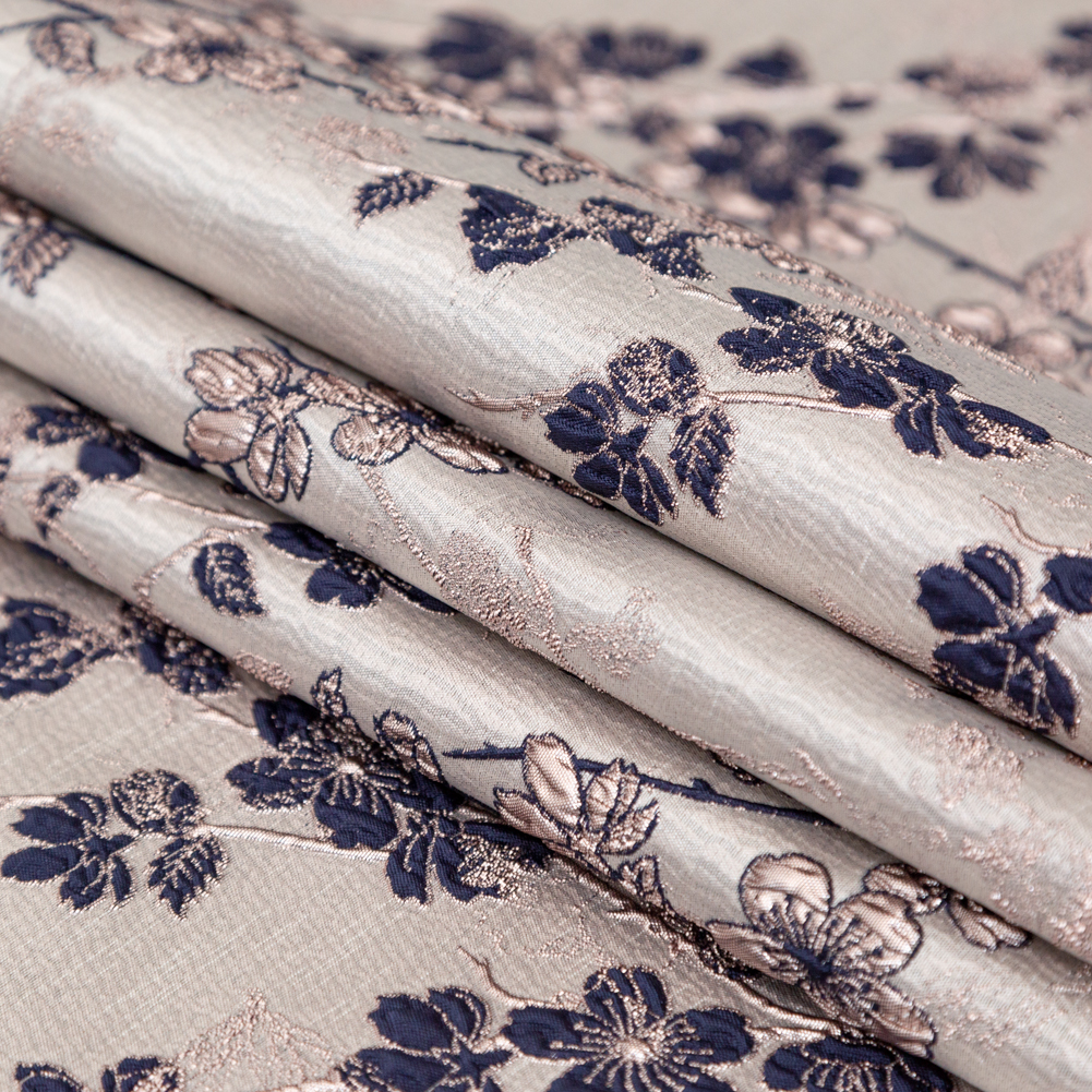 Rose Gold and Navy Luxury Floral Metallic Brocade