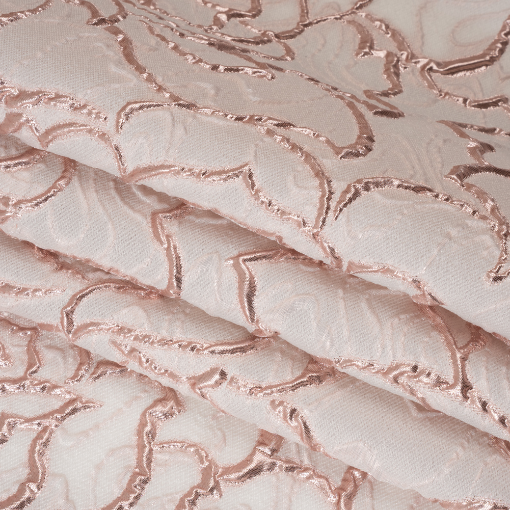 Rose Outlines Cutwork Luxury Brocade - Metallic Rose Gold and Pale Pink