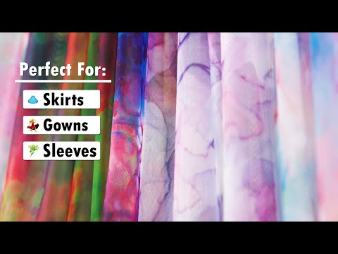 Dive into a sea of possibilities with this Rose Red and Blue Spotted Watercolor Printed Tulle . In brilliant red, blue, and yellow, a design like sea salt dropped onto a watercolor painting spreads over the surface. Soft and smooth in hand with an airy, billowing drape, add it as an overlay for voluminous skirts and gowns, or use this tulle on its own to create statement sleeves, selkie dresses and so much more. Transparent, a lining should be considered where opacity is desired.