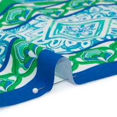 Polyester Stretch Mesh - Green, Berry Red and Butterceam Painted Palm Leaves - Designer Deadstock