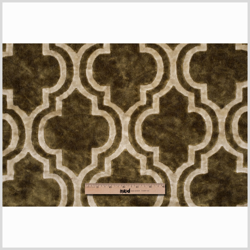 Upholstery velvet in a distinctive Moroccan pattern. Shades of sage. Rich and evocative; goes well in formal and informal rooms.
