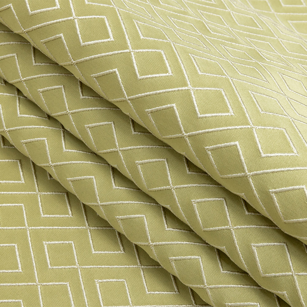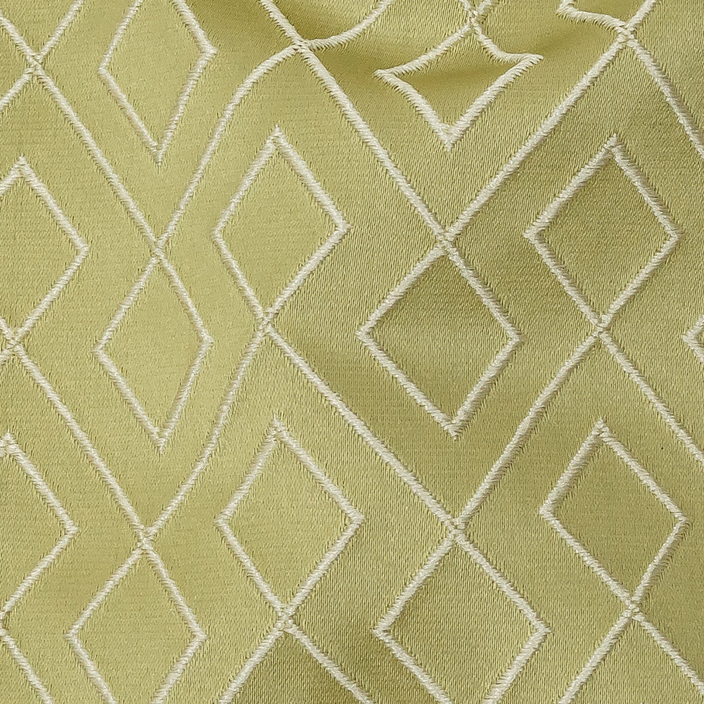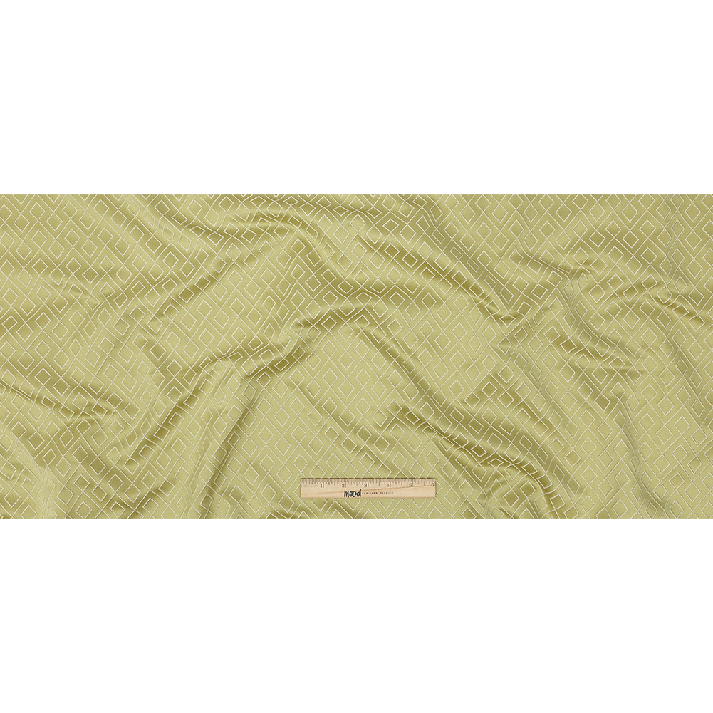 You'll certainly enjoy the fruits of your labor when you use this British Imported Apple Diamond Fret Satin-Faced Jacquard! Zigzag lines and diamonds connect and intersect in a textural pattern created by Jacquard weaving on top of a satin ground. Slick in hand with a full, heavy drape, this fabric is perfect for elegant window treatments. Craft stately drapes that block excess sunlight without giving the room a heavy air, or accent your windows with expertly draped swags and stunning valances. While this material blocks light quite well on its own, add a blackout lining for maximum darkness and to protect the material from fading and damage from UV light.