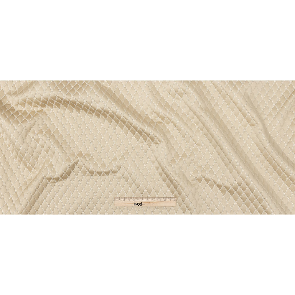It’s easy to craft a winning design with this British Imported Gold Shadow Diamond Satin-Faced Jacquard! A pattern of diamonds appears particularly dimensional, thanks to both the texture of the Jacquard weave structure and a design that gives them a drop shadow.