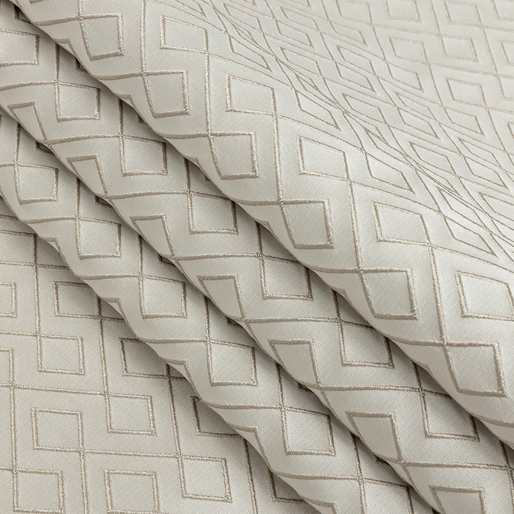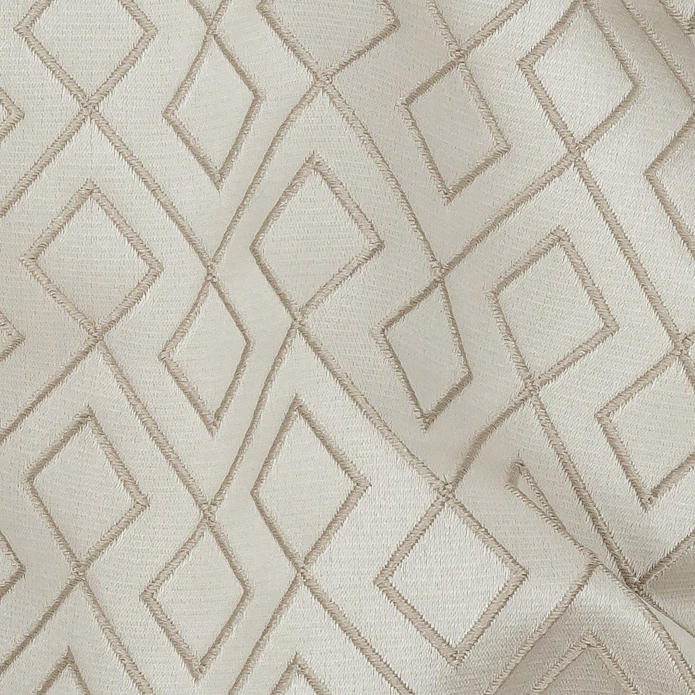 You'll feel on taupe of the world with this British Imported Taupe Diamond Fret Satin-Faced Jacquard! Zigzag lines and diamonds connect and intersect in a textural pattern created by Jacquard weaving on top of a satin ground. Slick in hand with a full, heavy drape, this fabric is perfect for elegant window treatments. Craft stately drapes that block excess sunlight without giving the room a heavy air, or accent your windows with expertly draped swags and stunning valances. While this material blocks light quite well on its own, add a blackout lining for maximum darkness and to protect the material from fading and damage from UV light.