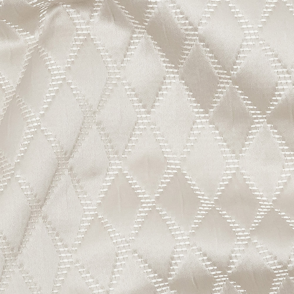 Nothing taupes the exquisite look of this British Imported Taupe Shadow Diamond Satin-Faced Jacquard! A pattern of diamonds appears particularly dimensional, thanks to both the texture of the Jacquard weave structure and a design that gives them a drop shadow. With a sleek, dry hand and full drape, this material is especially suited to stately window treatments. Curtains, drapes, and valances will shine, plus craft other light-use projects like wall hangings, upholstered headboards, or decorative pillows. Opaque, linings aren't necessary but may serve to enhance light blocking as well as protecting fibers from damage, particularly in high-sun windows.