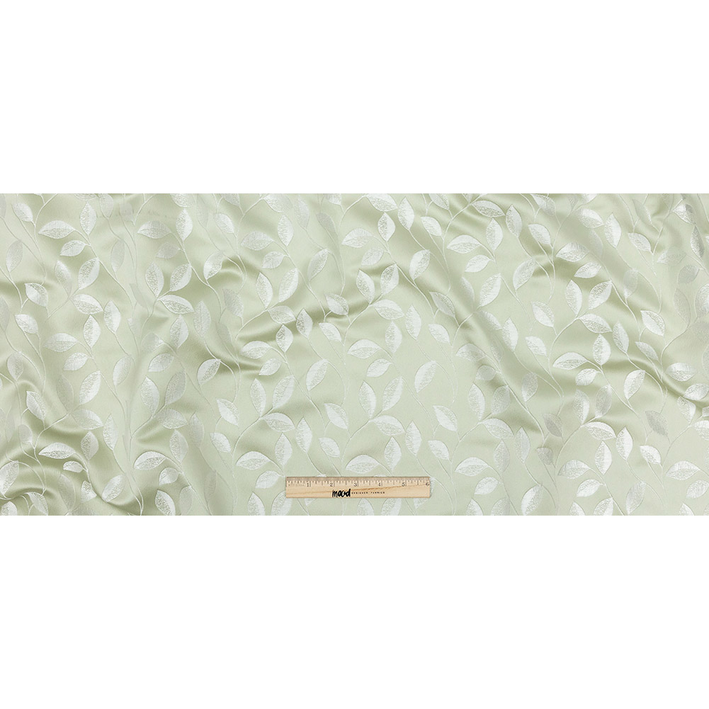 This British Imported Willow Foliage Satin-Faced Jacquard will draw you in like the captivating light of a will-o-the-wisp. Gleaming pale leaves on fine vines twist and scroll across a sea of endless satin, silky with a hint of texture from the intricate weaving which forms the pattern. With a voluminous drape and luminous presence, craft this material into stately home decor projects: endlessly pooling drapes, regal swags and valances, or perfectly placed curtains. The opacity of this fabric is sure to block plenty of light, but consider adding a drapery lining to enhance the light-blocking properties as well as protect the material from the sun, particularly in areas with greater exposure.