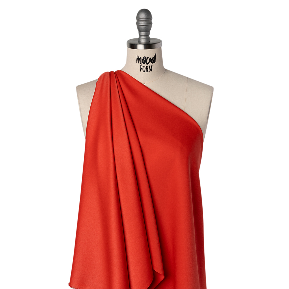 Feel like you’re on the red carpet no matter where you roam in this Radcliffe Red Satin-Faced Polyester Crepe—featuring a sleek, dry hand and fluid drape.Suggested Projects: Dresses, Pants, Blouses, SkirtsContent: 100% PolyesterStretch: NoneOpacity: Slightly TranslucentEasily elevate any outfit with this bright red crepe. A satin weave lends this crepe its radiant luster and smooth face, while the reverse reveals a subtle grain that adds quiet depth and texture. With a fluid drape that glides gracefully, it’s perfect for both dressing up and casual creations—think cowl-neck dresses, slip skirts, peasant blouses, and flowing pants. Slightly translucent, a lining may be added for coverage and a refined finish.