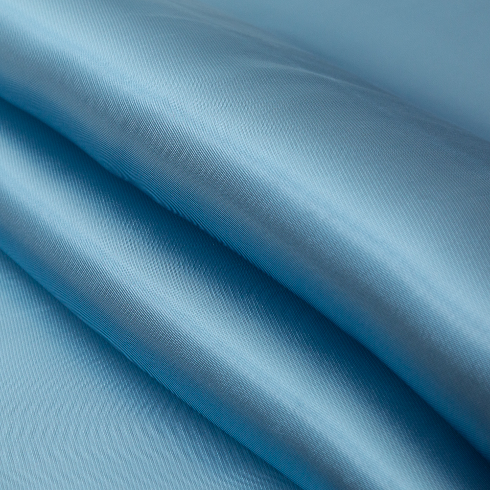 If the Caribbean Sea flowed like a river, our Luminous Satin-Faced Twill Organza in Aqua would be the steam! Exposing the most captivating sheen one will ever see, we oh-so-love its shimmering complexion. One side smooth and the other textural, this twill-woven medium reps an appearance that's tactile. Bouncing off light, its wavering luster excites a geometrical illusion that's like playing a game of Jenga. And, down for some translucent lovin'—especially since it's lightweight—this twill organza prefers structured designs over draped, making so countless bridal, evening, and full silhouettes are well within reach. Triumph at the most formal of social occasions in a ball gown (with a cut-off-the-shoulder decollete neckline); twirl into a tutu dress with a fitted bodice and skirt made up of multiple layers; even accessorize with bows, bracelets, other trimmings, and more. Consider silk double crepe, taffeta, or china silk for lining your garment, as at least one lining fabric is necessary to issue true opacity, grant comfort, and prevent slippage at the seams. In place of fusible interfacing, try doubling up on organza or using cotton voile or batiste. Also—for those who love to embroider—frost your look with some sequins, rhinestones, and/or beads.