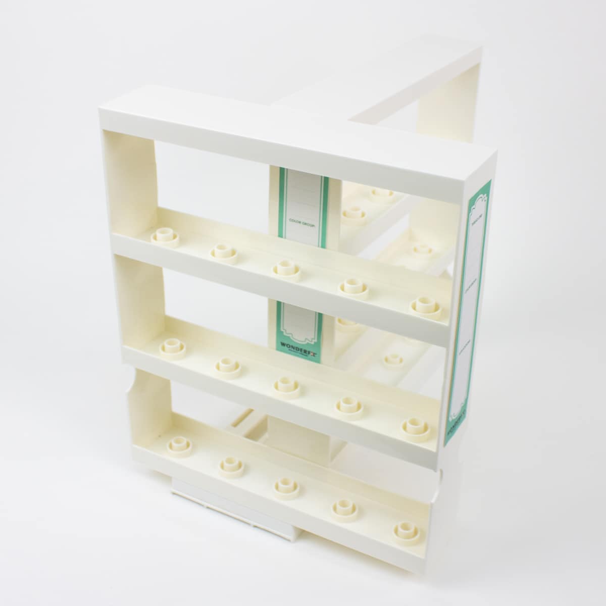 - Holds up to 30 spools with two sliding compartments for efficient storage.