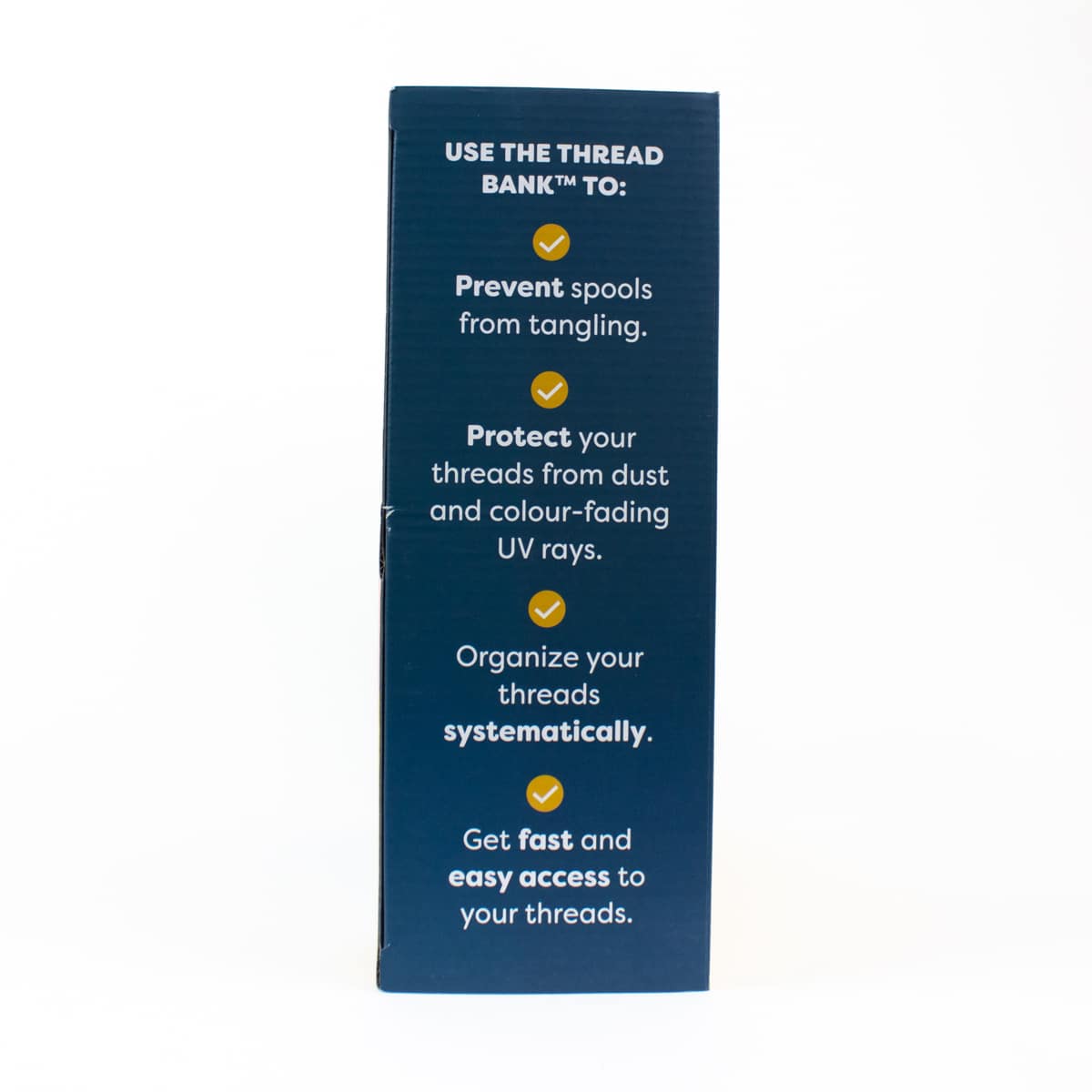 Storing thread can be a challenge, unlike fabric, it comes in various spool sizes and shapes that can’t simply be folded. That’s why we created the Thread Bank™, an expandable thread storage solution designed to keep your spools organized, tangle-free, and protected from UV rays and humidity. No more messy bins or tangled threads!