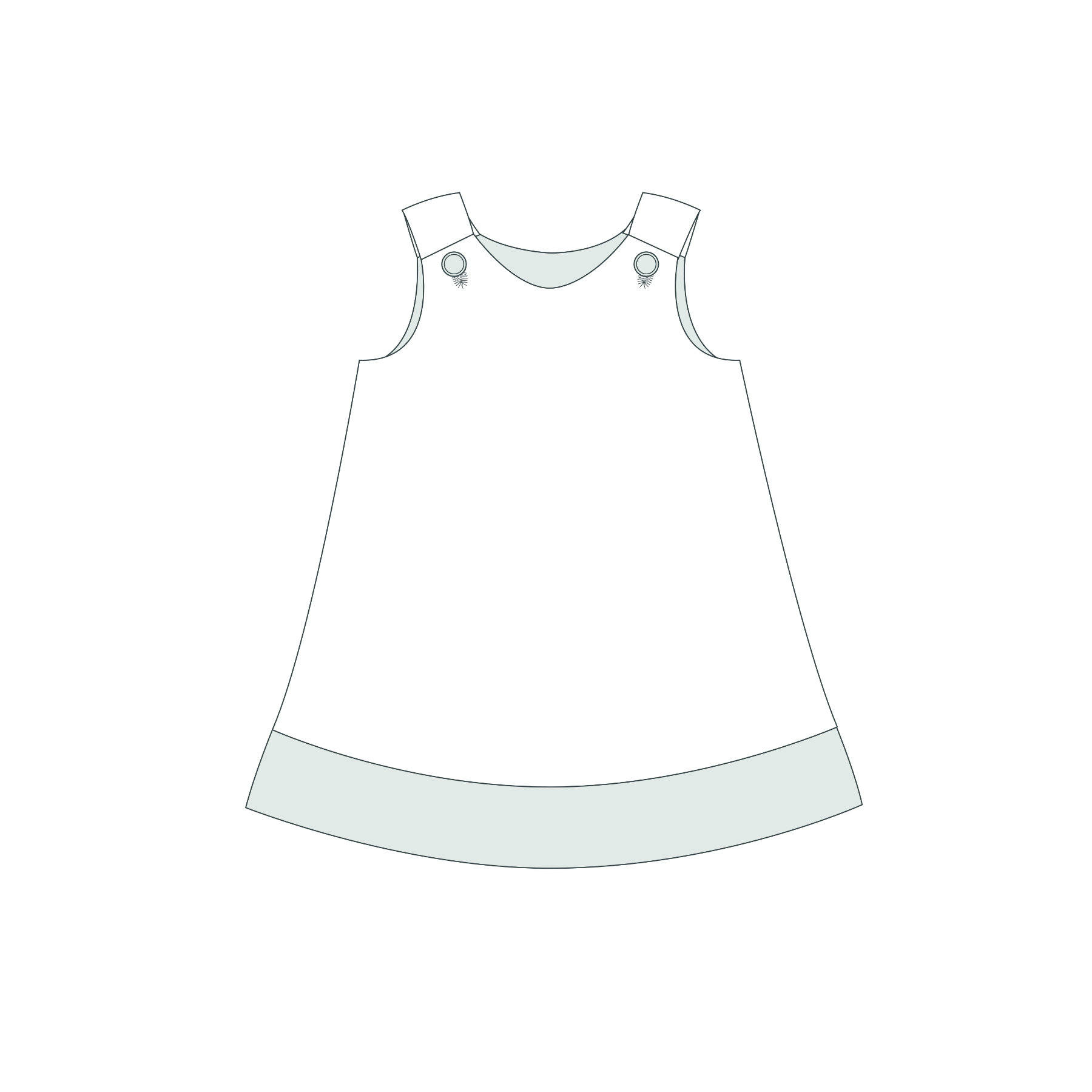 ✔ Pinafore dress with hem in contrast fabric, buttons and top facing in contrast fabric (lined)