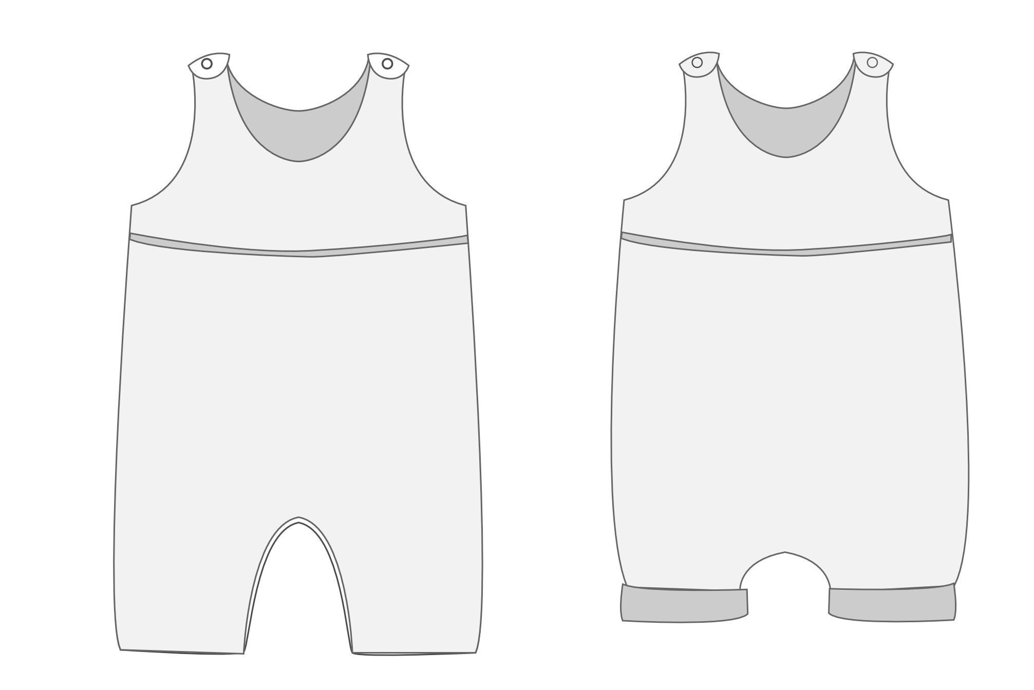 The DOLCE romper sewing pattern features short legs, soft leg cuffs, and grosgrain ribbon details.