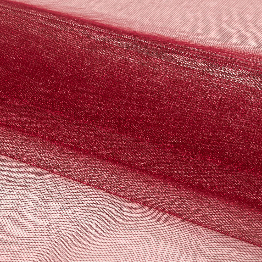 Whether you're sipping a merlot, pinot noir, or zinfandel, you'll look lovely in our Wine Shimmering Soft Tulle! Featuring a flexible drape and soft hand.Suggested Projects: Tutus, Underskirts, OverlaysContent: 100% NylonStretch: Moderate All-Way Mechanical GiveOpacity: SheerOn a wine red diamond net with notable all-way stretch, an allover sparkle lends a glamorous, shimmering finish. Bouncy and pliable in drape, this tulle is of a smoother finish than expected, making it a softer, more comfortable alternative than stiffer tulles. Try Romantic-style tutus, layered underskirts for volume, or overlays on evening gowns. Due to the open mesh construction, consider a lining or layering for complete opacity.