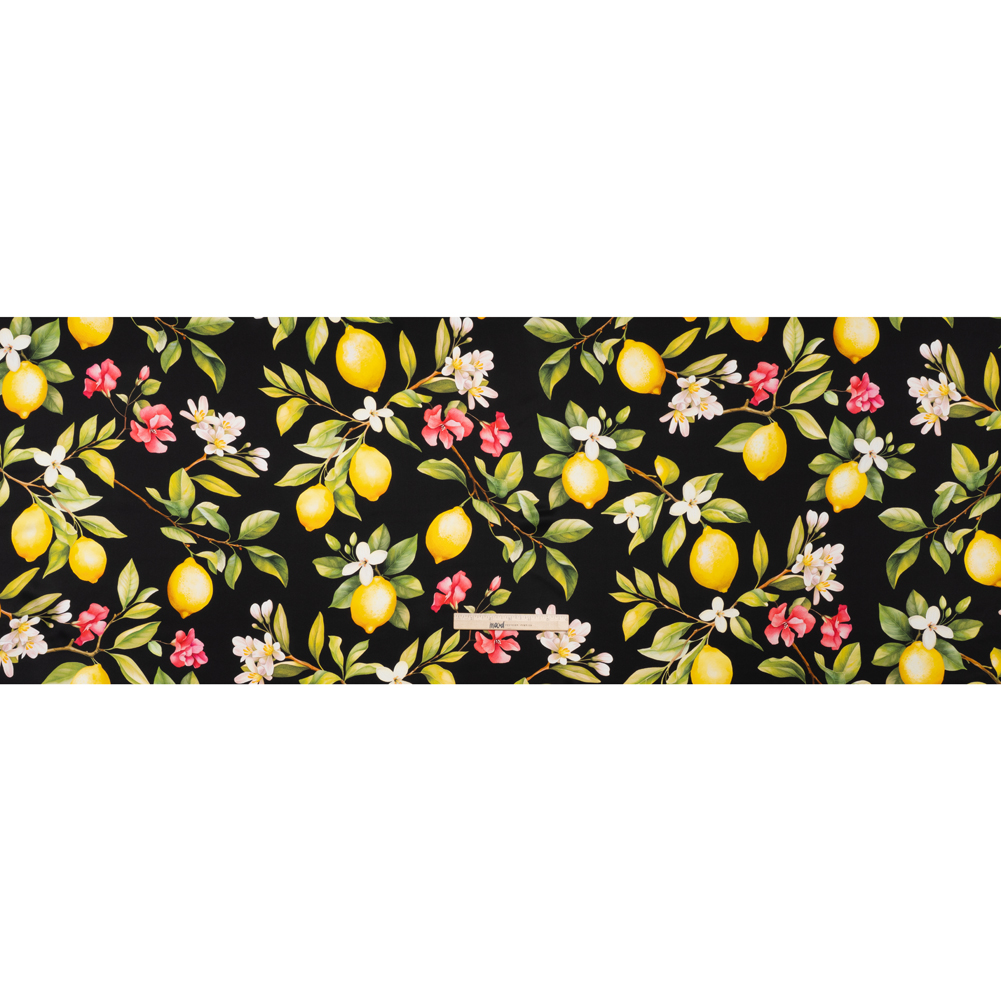 Silk Charmeuse Print 16MM, Made in Italy - Black, Green and Yellow Blossoming Lemon Tree