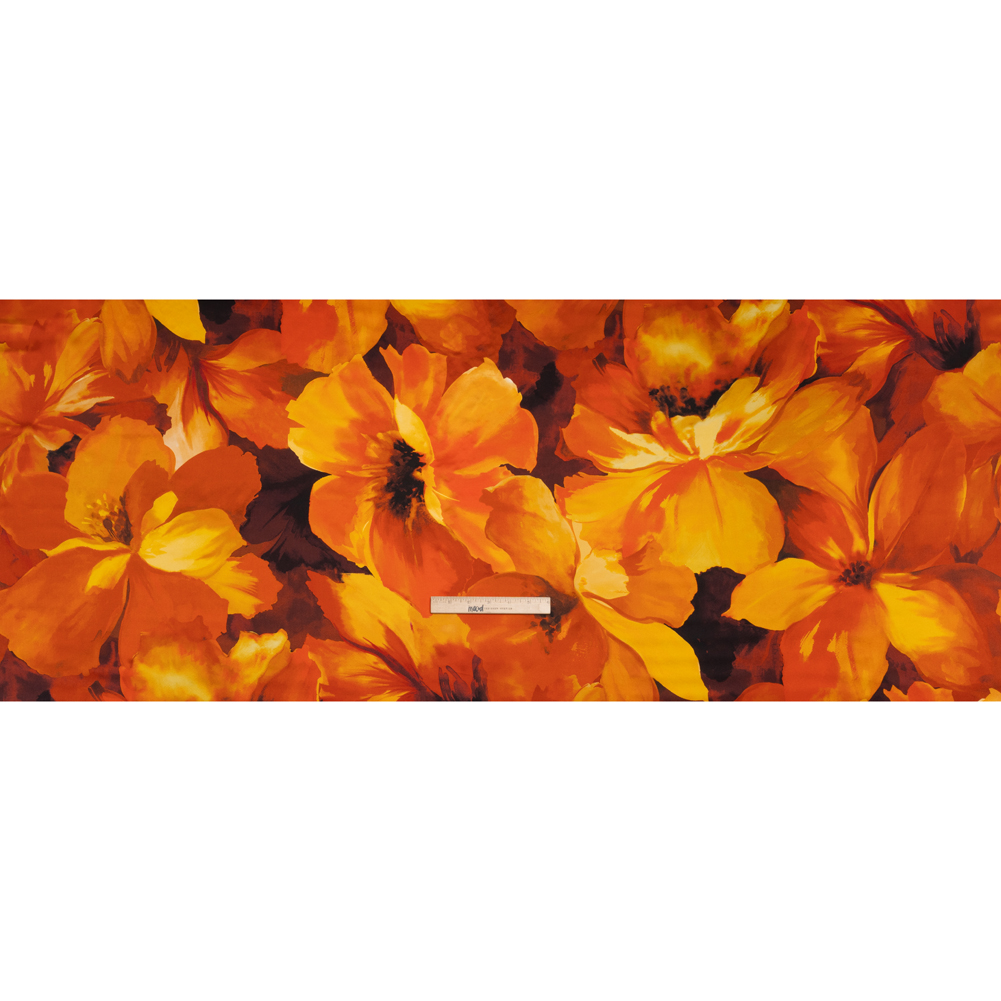Golden hour sets atop this Painterly Flowers 16MM Silk Charmeuse Print. Made in Italy, it boasts a subtle luster, fluid drape, and silky smooth hand.Suggested Projects: Dresses, Skirts, Pants, BlousesContent: 100% SilkStretch: NoneOpacity: Slightly TranslucentCraft yourself a flower garden with the dark orange, golden yellow, and russet brown flowers that are painted across this silk charmeuse. Fluid and lightweight, this silk charmeuse is of the highest quality, with a smooth, slippery feel adding to its luxurious look. Create slip dresses and bias-cut evening gowns, loose and flowing pants, or breezy blouses. Slightly translucent, particularly in the lighter-colored areas, a lining may be added to increase opacity and structure but isn't of necessity.