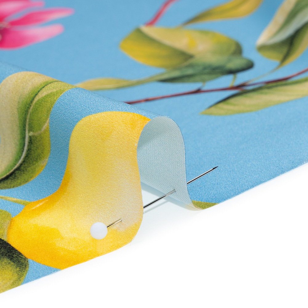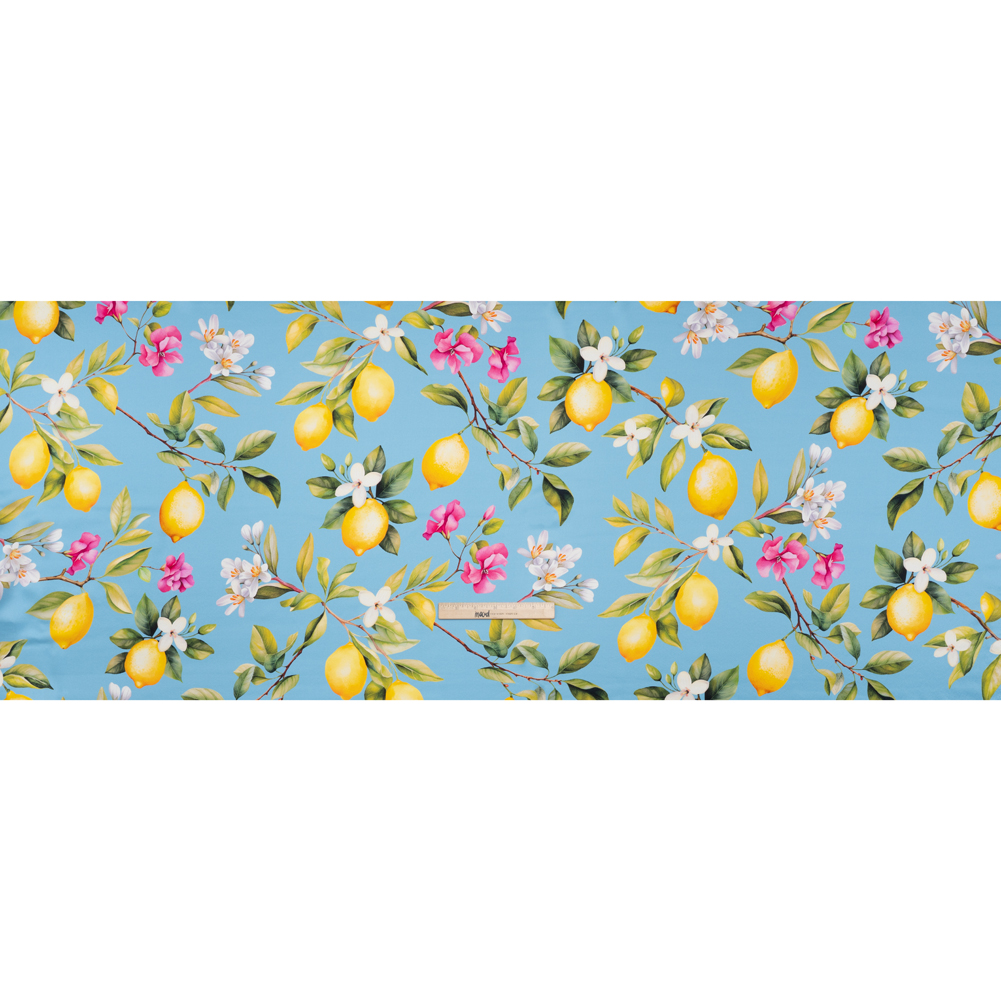 Silk Charmeuse Print 16MM, Made in Italy - Sky Blue, Green and Yellow Blossoming Lemon Tree