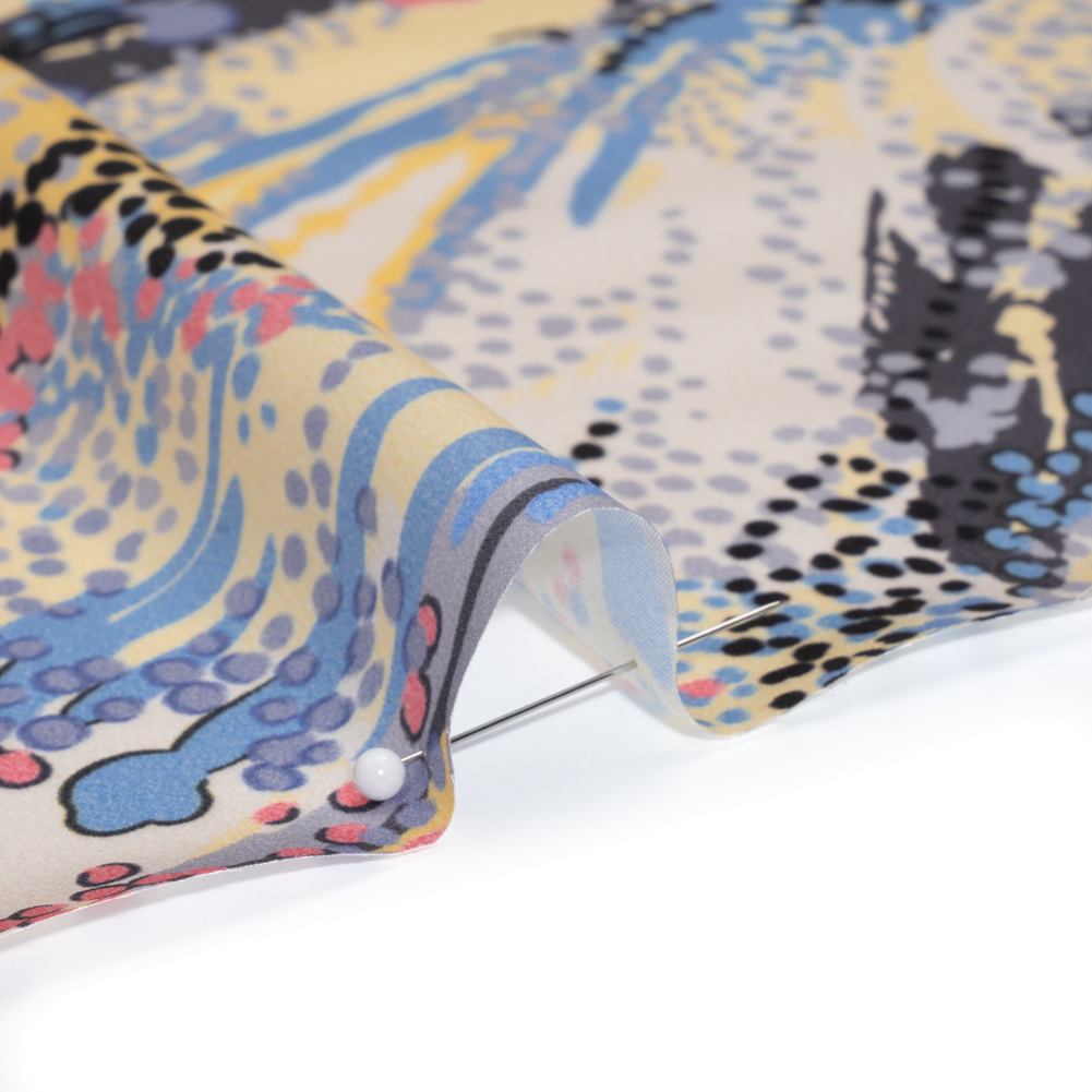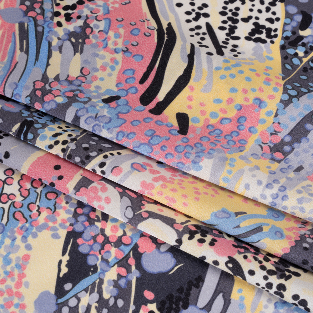 Silk Charmeuse Print - Pink, Butter Yellow and Sky Blue Flowing Streaks and Spots - Made in Italy