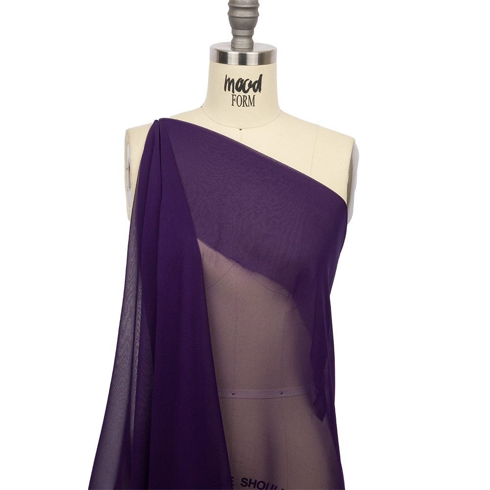 Mood's Silk Chiffon 54" - Grape - Premium Collection is a sheer, lightweight and ethereal fabric. An excellent choice for fluid, top-weight garments, overlays, flowing scarves, and sheer insets such as ruffle details and draped extensions. Available in 95+ attractive shades. Note: Dye lots are subject to change up to 10% in either direction. Ordering swatches is HIGHLY recommended for these products.