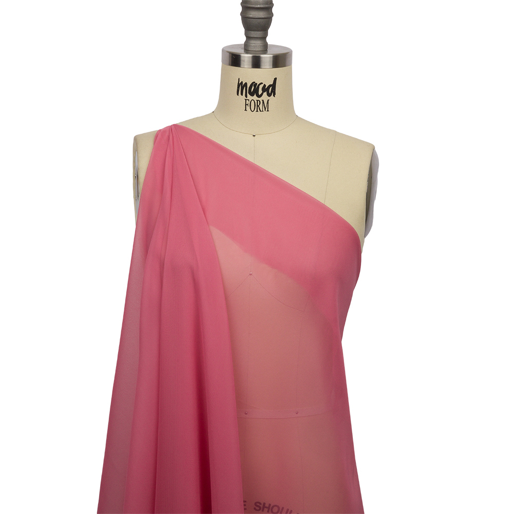 Mood's Silk Chiffon 54" - Rapture Rose - Premium Collection is a sheer, lightweight and ethereal fabric. An excellent choice for fluid, top-weight garments, overlays, flowing scarves, and sheer insets such as ruffle details and draped extensions. Available in 95+ attractive shades. Note: Dye lots are subject to change up to 10% in either direction. Ordering swatches is HIGHLY recommended for these products.