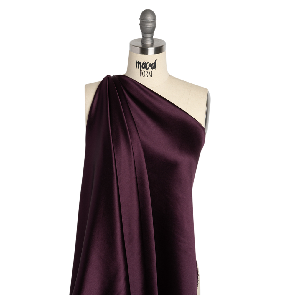 Mood's Silk Crepe Back Satin - Eggplant - Premium Collection is a medium weight silk with a satin face and a creped weave on the reverse face. With an exquisite, full-bodied drape and a lovely sheen, make sumptuous dresses, blouses, skirts, and special occasion garments. Available in 95+ attractive shades. Note: Dye lots are subject to change up to 10% in either direction. Ordering swatches is HIGHLY recommended for these products.