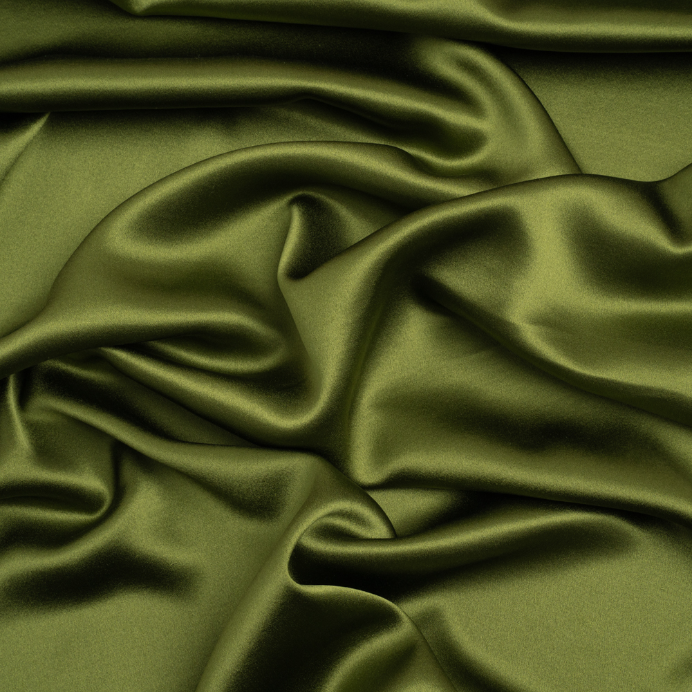 Mood's Silk Crepe Back Satin - Pesto Green - Premium Collection is a medium weight silk with a satin face and a creped weave on the reverse face. With an exquisite, full-bodied drape and a lovely sheen, make sumptuous dresses, blouses, skirts, and special occasion garments. Available in 95+ attractive shades. Note: Dye lots are subject to change up to 10% in either direction. Ordering swatches is HIGHLY recommended for these products.