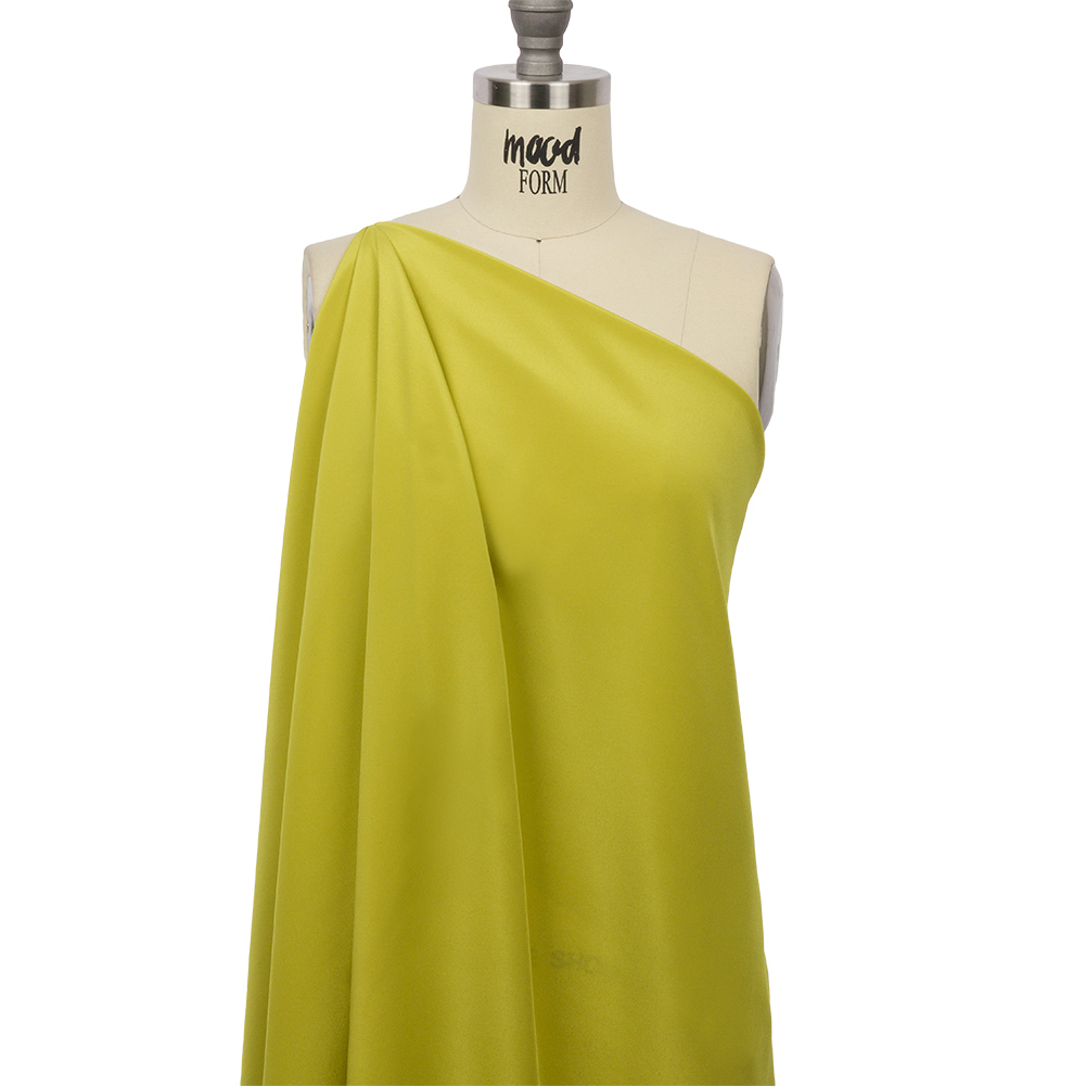 A touch of the sun shines atop this Warm Olive Silk Crepe de Chine. This delicate fabric features a soft hand, fluid drape, and translucence ideal for evening and office wear.Suggested Projects: Blouses, Dresses, Lingerie, LiningsContent: 100% SilkStretch: NoneOpacity: TranslucentBring your face up under the summer sun when wearing this warm olive crepe de chine. Lush to the touch, with a soft hand and fluid drape. Silk crepe de chine is perfect for all kinds of garments, from blouses to linings. Available in a variety of attractive shadesNote: Dye lots are subject to change up to 10% in either direction. Ordering swatches is HIGHLY recommended for these products.