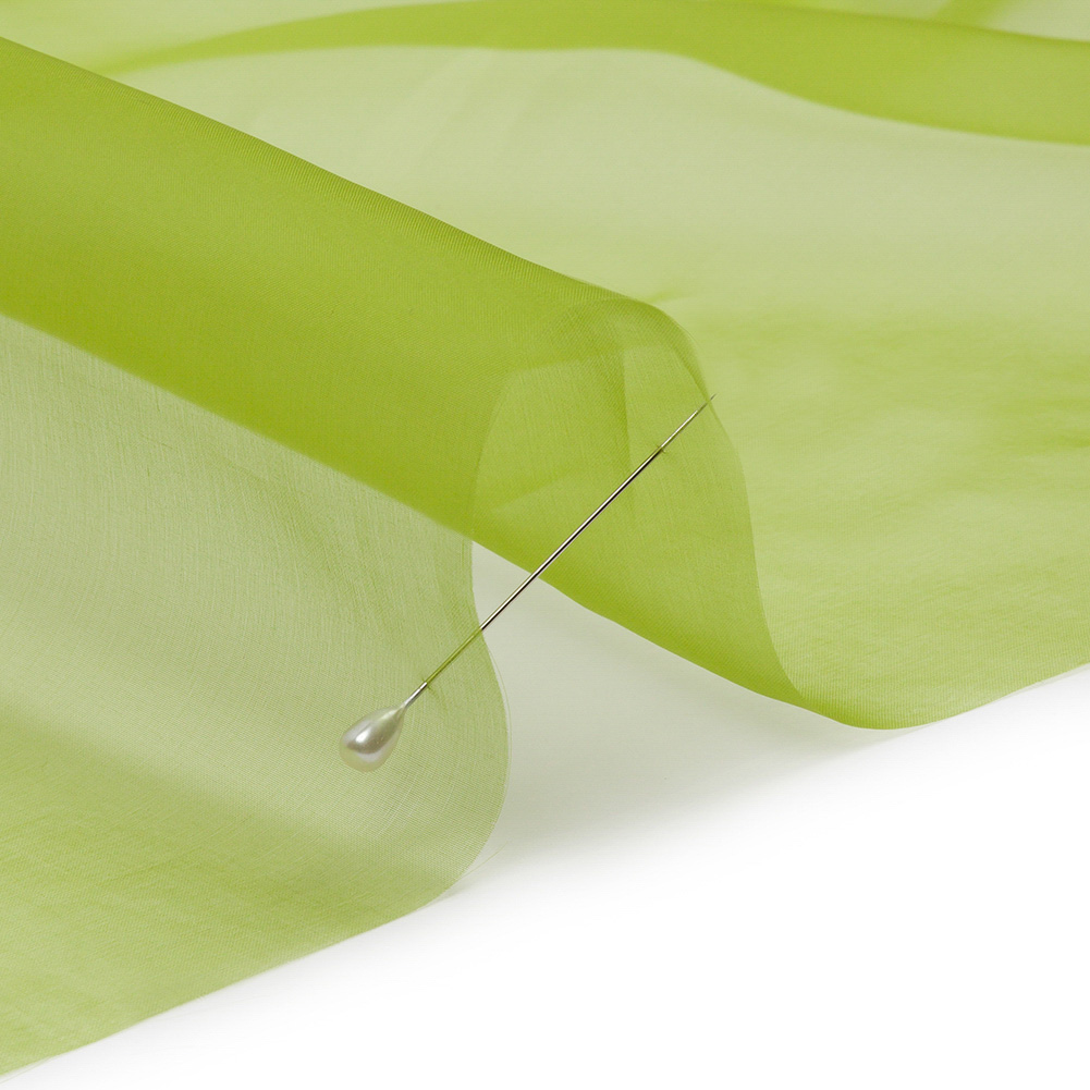 Mood's Silk Organza 44" - Peridot Green - Premium Collection is an exceptional fabric, both beautiful on its own and when featured as a supporting player in terms of underlinings. Organza fabrics are sheer and very lightweight, yet strong with a crisp drape. For voluminous endeavors such as ball gowns and wedding dresses or structural pursuits such as fabric roses or boxy silhouettes, organza is a go-to material. It also makes the best pressing cloth around. Available in 95+ attractive shades. Note: Dye lots are subject to change up to 10% in either direction. Ordering swatches is HIGHLY recommended for these products.