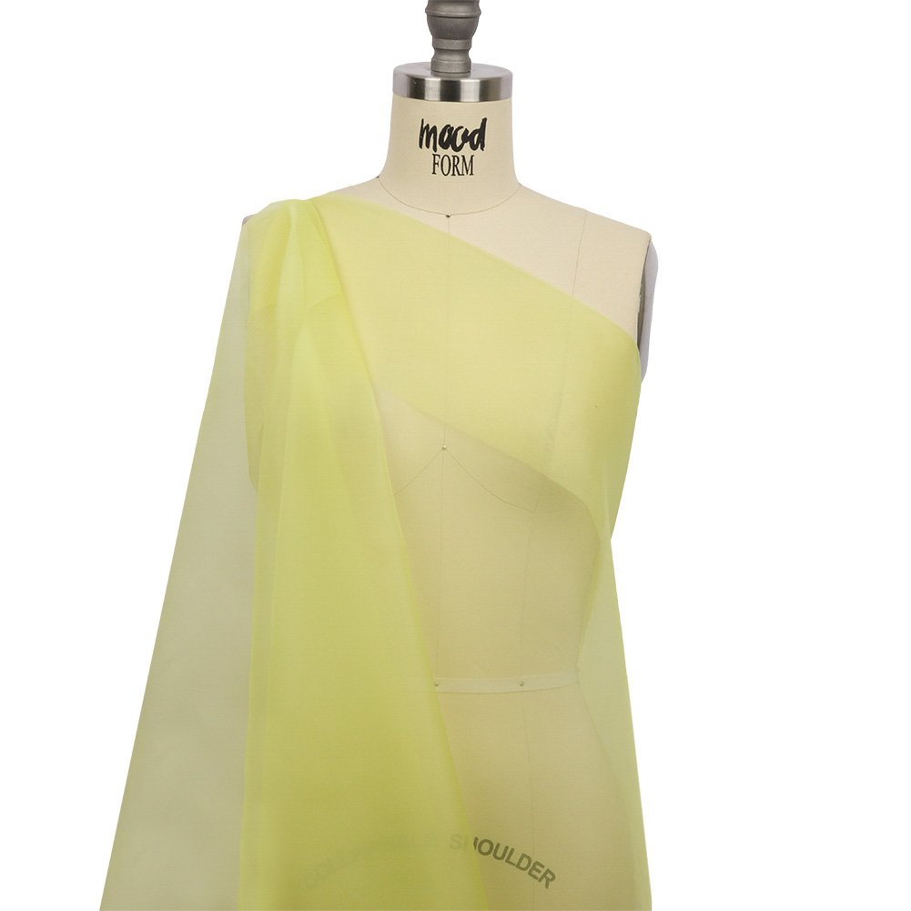 Mood's Silk Organza 44" - Sunny Lime - Premium Collection is an exceptional fabric, both beautiful on its own and when featured as a supporting player in terms of underlinings. Organza fabrics are sheer and very lightweight, yet strong with a crisp drape. For voluminous endeavors such as ball gowns and wedding dresses or structural pursuits such as fabric roses or boxy silhouettes, organza is a go-to material. It also makes the best pressing cloth around. Available in 95+ attractive shades. Note: Dye lots are subject to change up to 10% in either direction. Ordering swatches is HIGHLY recommended for these products.