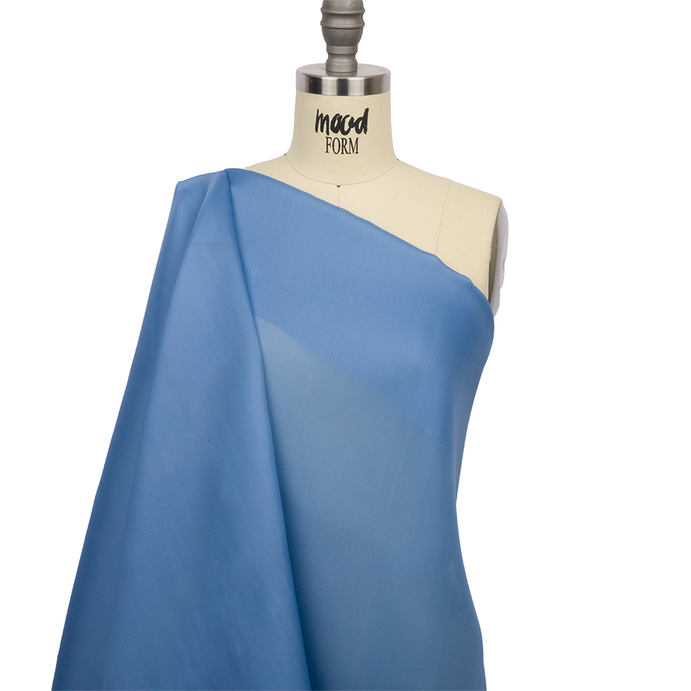 Mood's Silk Satin-Face Organza 54" - Regatta Blue - Premium Collection, like your average organza, is an exceptional material when used on its own or featured as a supporting player in terms of underlinings, but unlike the original material carries a riveting satin face. This fabric features organza's characteristically crisp drape as well as a raised opacity resulting from its lustrous satin finish. Lightweight and elegant, satin-faced organza is perfect for voluminous and structural evening wear endeavors. Available in 95+ attractive shades. Note: Dye lots are subject to change up to 10% in either direction. Ordering swatches is HIGHLY recommended for these products.