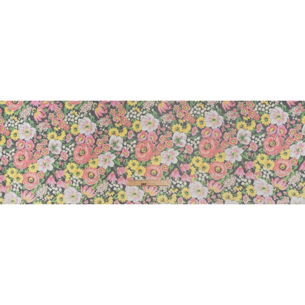 Silk Voile Print Made in Italy - Pink, Yellow and Green Flower Garden - Deadstock