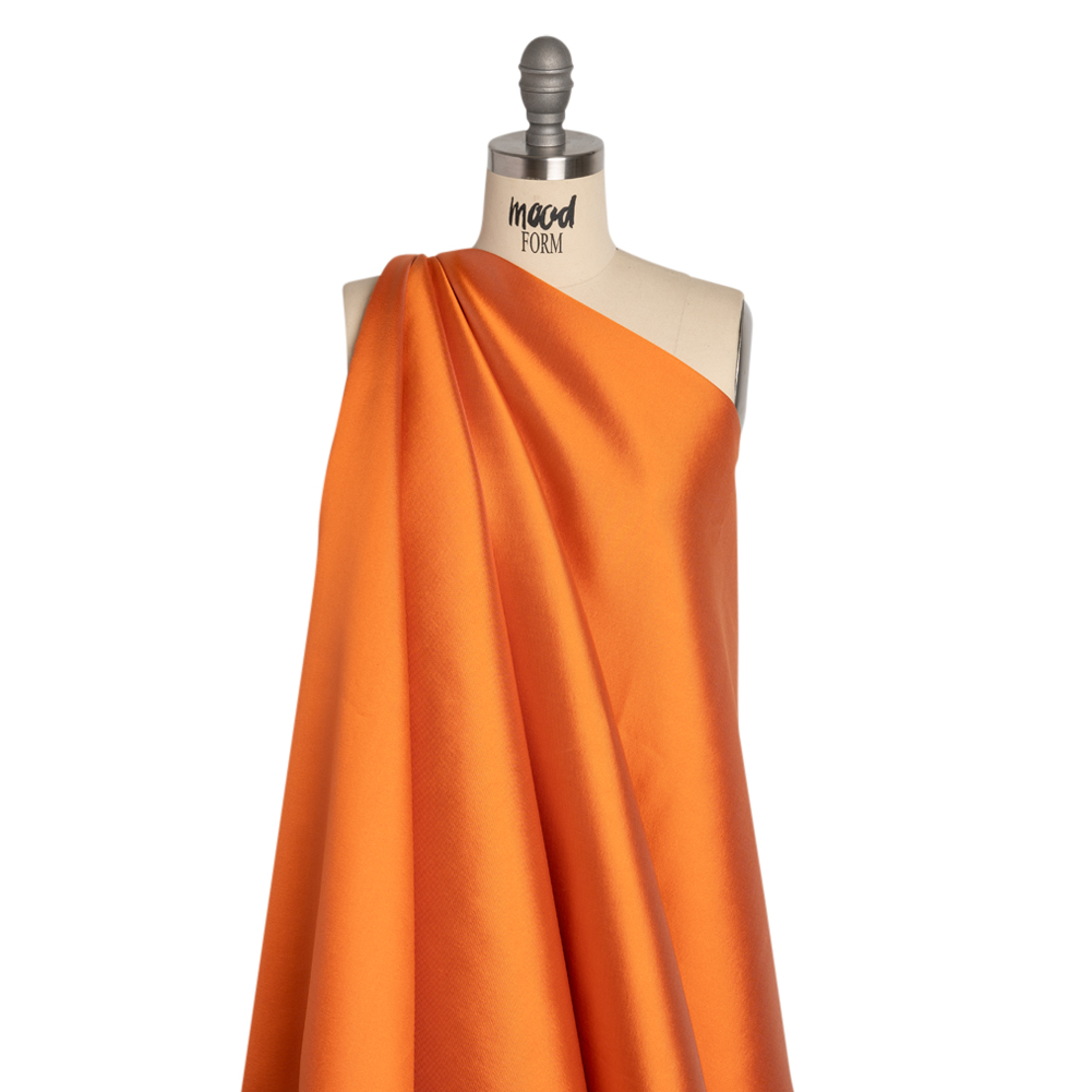 Presenting a Harvest Pumpkin Silk and Wool Woven made especially for Mood. This quality, medium weight fabric features a satiny sheen on one side, a slightly thicker hand, and a soft drape. Utilize this elegant fabric for special occasion wear from radiant suits and striking pants to stunning jackets and gorgeous dresses. Available in 45+ attractive shades. Note: Dye lots are subject to change up to 10% in either direction. Ordering swatches is HIGHLY recommended for these products.