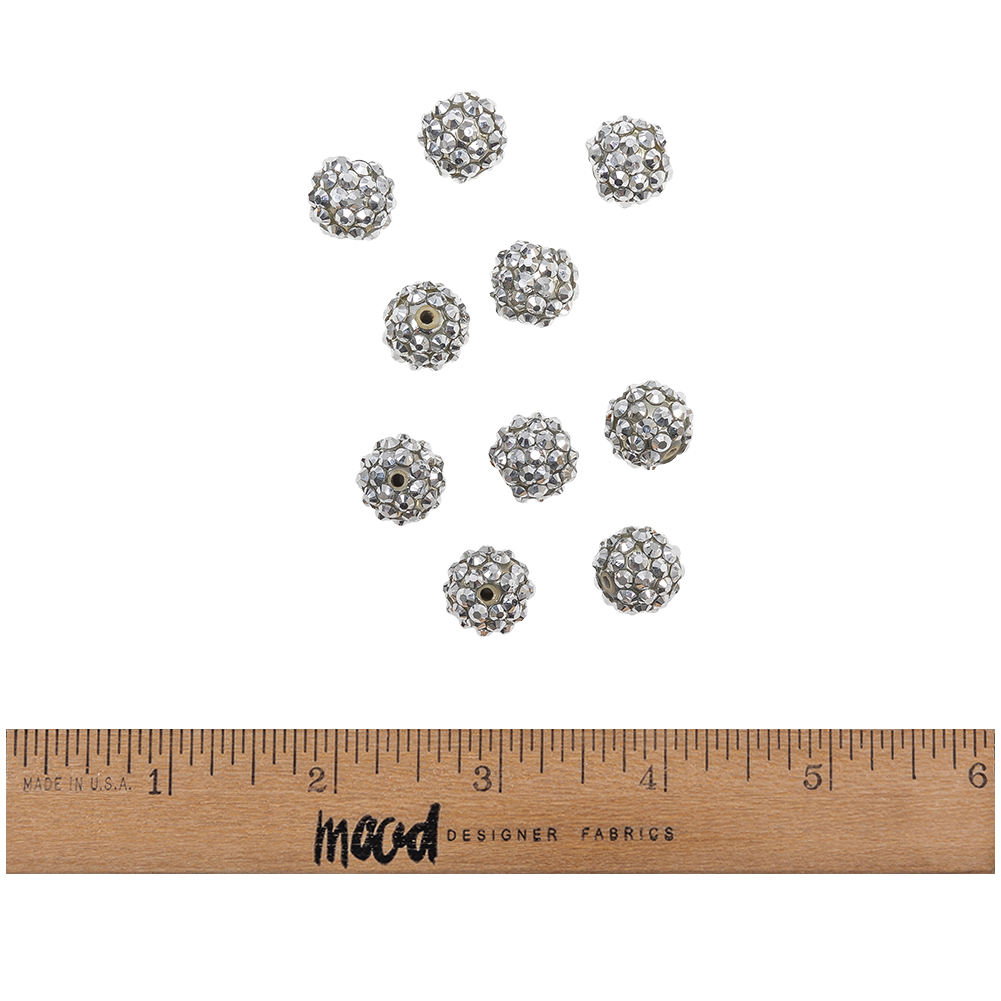 Revamp a thrifted treasure or finish your handmade garment with these Silver AB Rhinestone and Resin Faceted 14mm Beads! Each silver bead features sparkling facets, with an iridescent finish for an extra magical look. Chunky and definitely funky, these beads can easily be added to home decor, costumes, crafts, or avant-garde fashion projects.Please note: This listing contains 10 beads, with each bead 14mm in diameter. WARNING: Cancer and Reproductive Harm - www.P65Warnings.ca.gov.