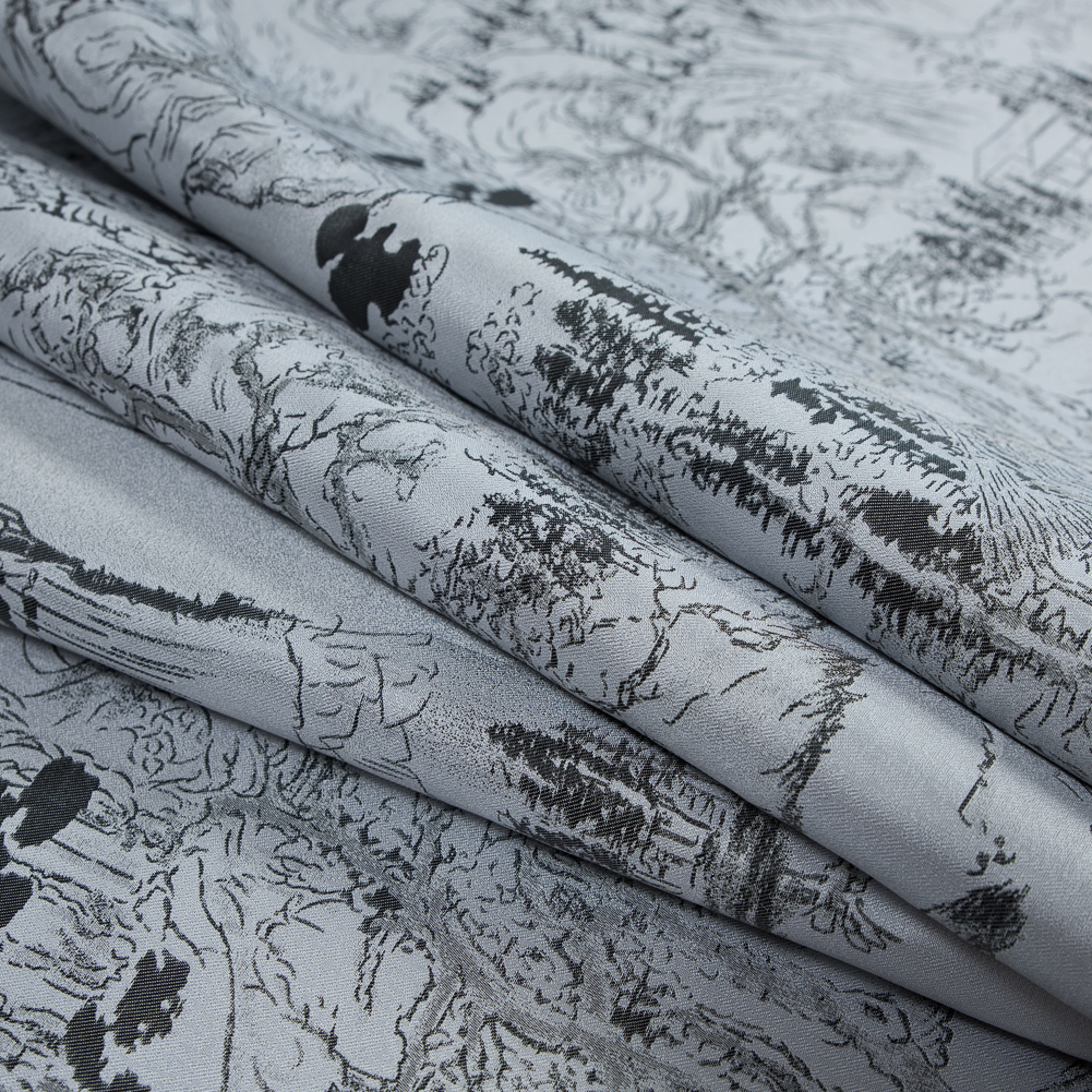 Silver and Black Landscape Jacquard Panel