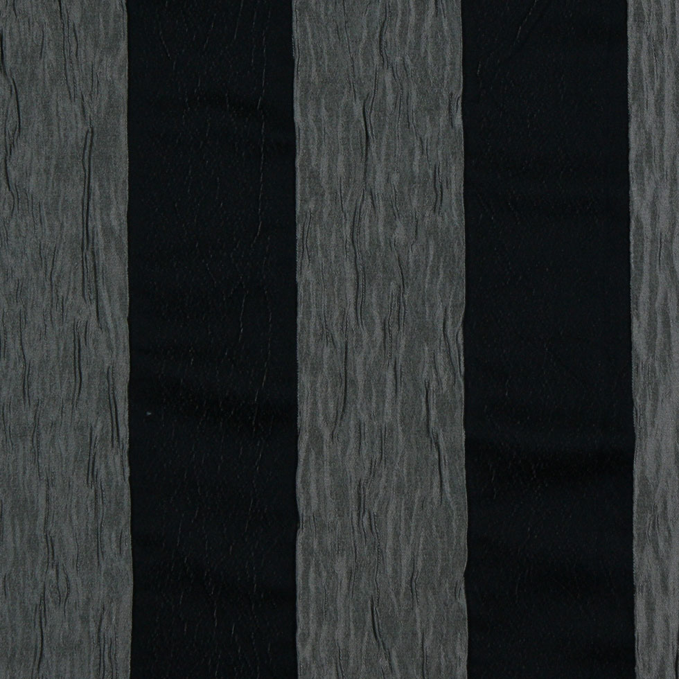 This is a polyester with puckered, iridescent, silver and satin finished black stripes.