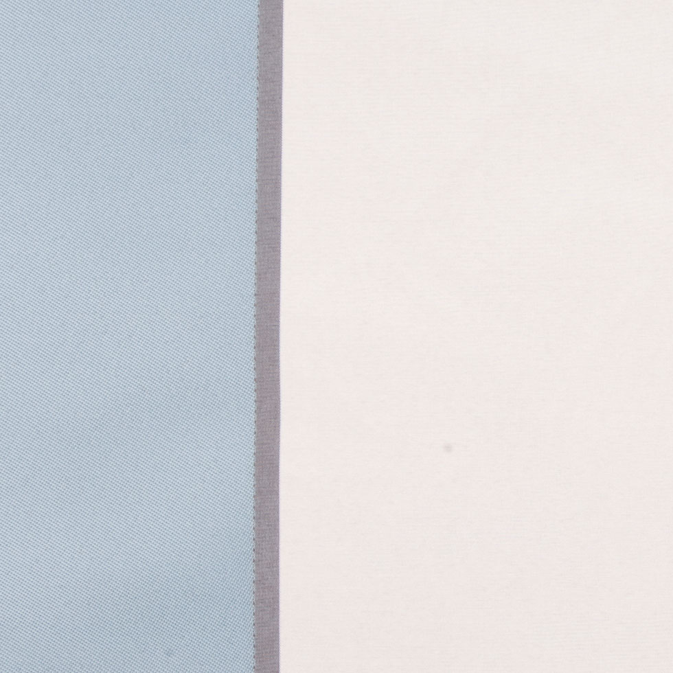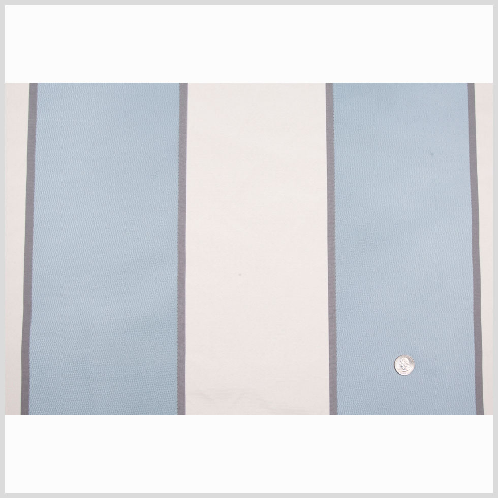 This is a polyester stripe in sky blue, natural, and iridescent black.