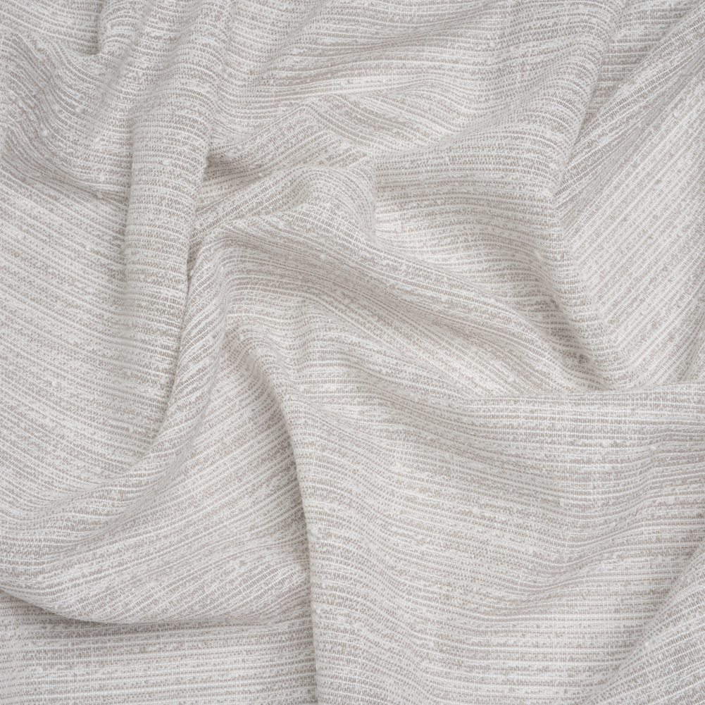 This simple Pebble Slubbed Double-Wide Drapery Sheers Woven Fabric is awaiting your creative touch—featuring a tactile hand, alluring open weave, and airy drape.Suggested Projects: Drapery SheersContent: 100% PolyesterStretch: NoneOpacity: SheerSlubbed sophistication flows through your space as pebble and white threads intertwine within this drapery sheer woven. The finishing touches make all the difference, and this simple yet striking textile elevates your designs from DIY to high-end. Ideal for adding dimension to curtains and valances, softening window treatments, or tackling large drapery projects, its double-wide measurements ensure every detail is perfect. With a rustic, open weave forming a gridded, net-like structure and subtle slubs for texture, it’s perfect for creating spaces that feel grounded, warm, and effortlessly stylish.