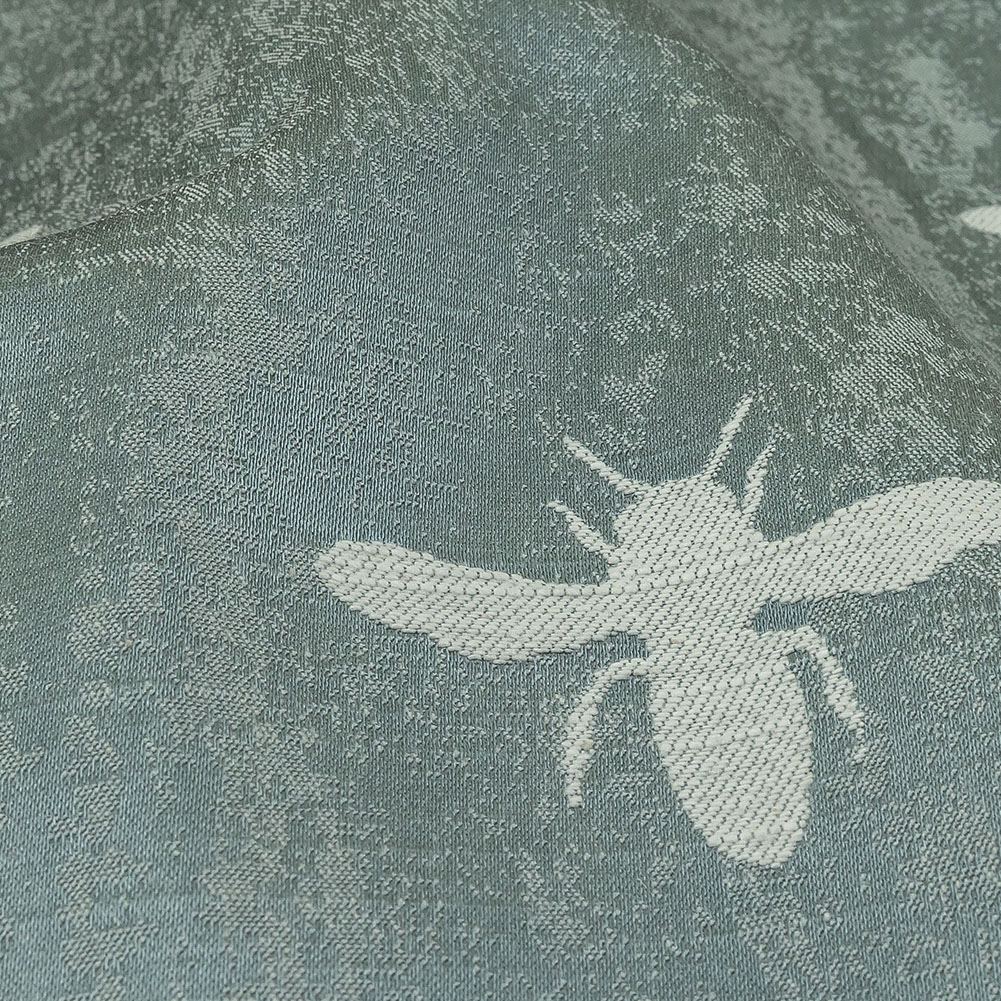 Your home will bee the best on the block with our British Imported Ocean Buzzing Bees Slubbed Drapery Jacquard! Busy oyster white bees fly amongst a metallic pale teal ground.