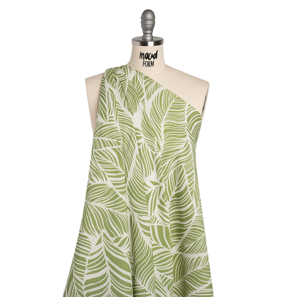 Slubbed Gauzy Cotton Woven - Green and White Leaves - Mood Exclusive Spring Sonnet Print